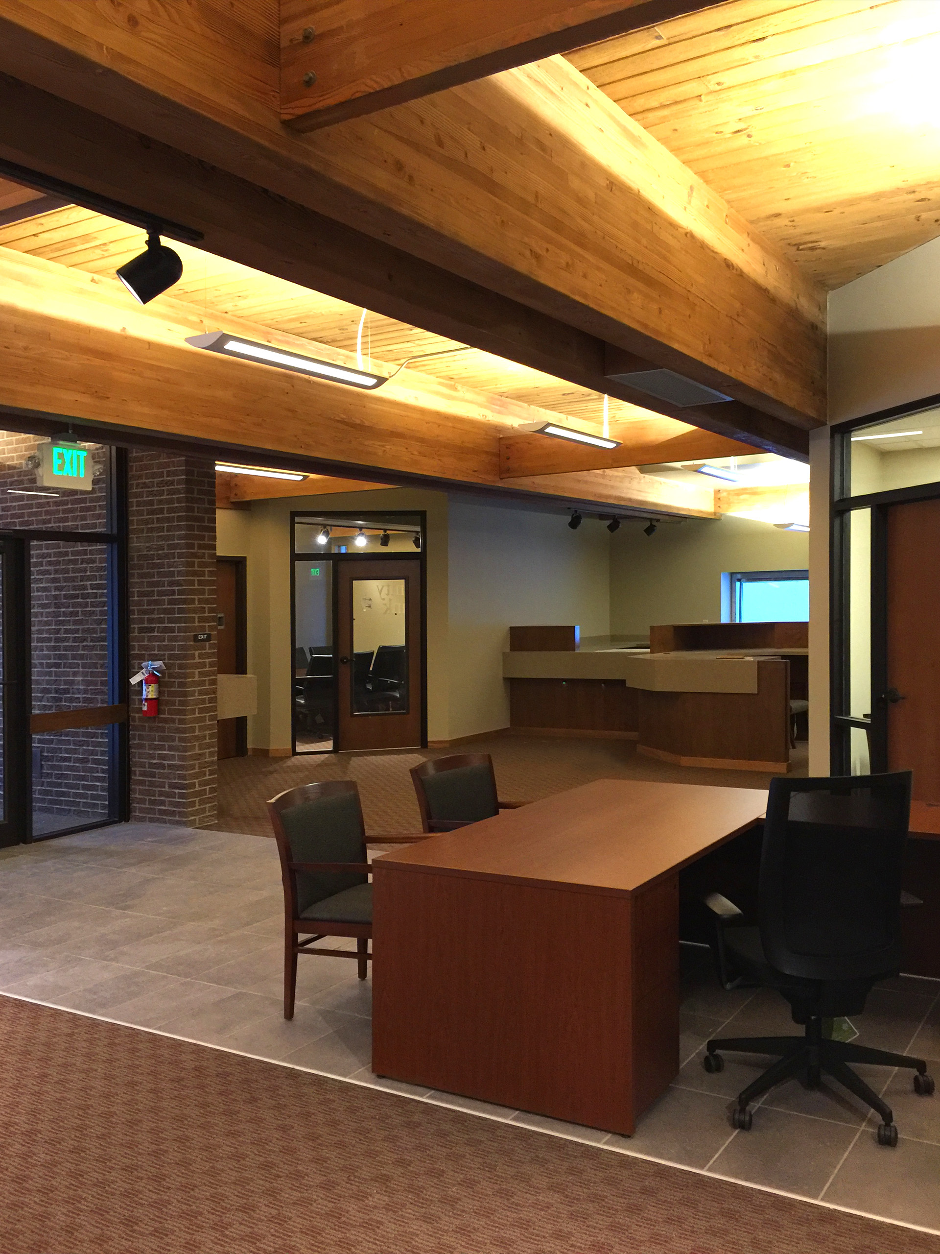 Formerly a 1960s TV and radio station, this structure was reimagined as a modern bank through adaptive reuse. Weathered steel, wood accents, and expansive glass redefine the façade, blending industrial character with transparency and light. Planter-integrated benches enhance the pedestrian experience and soften the building’s street presence, contributing to the evolving fabric of downtown Coeur d’Alene.